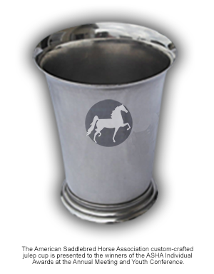 Inductees receive: A custom-crafted julep cup, which is symbolic of the highest honor upon which one can be bestowed by the American Saddlebred Horse Association.