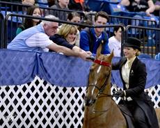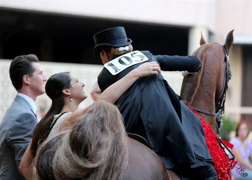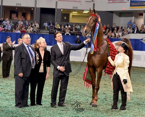 Jessica Wuestophen and CH-EQ Chantis Prayer at the UPHA American Royal with Mother Michelle Werry and step-father Glenn Werry after her number was called as the 2013 Saddleseat Equitation Triple Crown winner, winning the NHS Good Hands Finals, UPHA ...