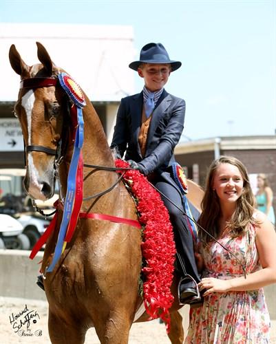 Callaway’s Winning Number and Will Rowland with sister Alice Rowland after win in the KSF Junior Exhibitor Country Pleasure Championship 13 & under.