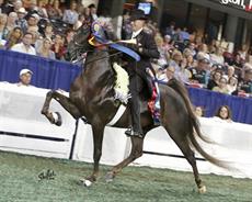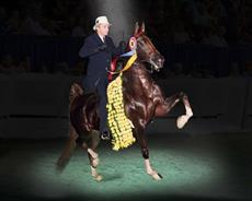 CH Wild Eyed and Wicked and Dena Lopez winning the 5 Gaited World's Grand Championship.