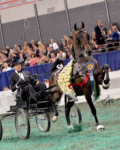 Wild Carrissima and Bret Day winning the Fine Harness World’s Championship.