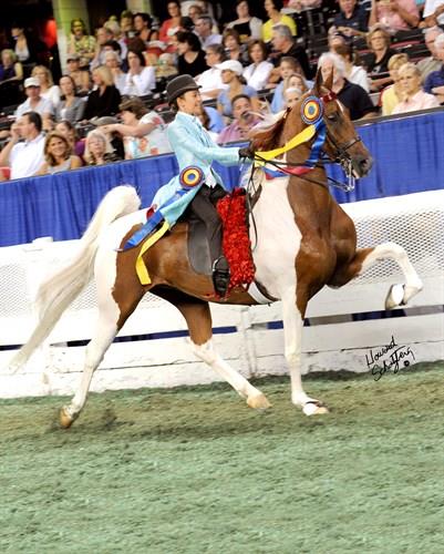 Eleanor Rainbolt-Forbes and CH Sprinkles winning the 5 Gaited 13 & Under Championship at the KSF in 2010.